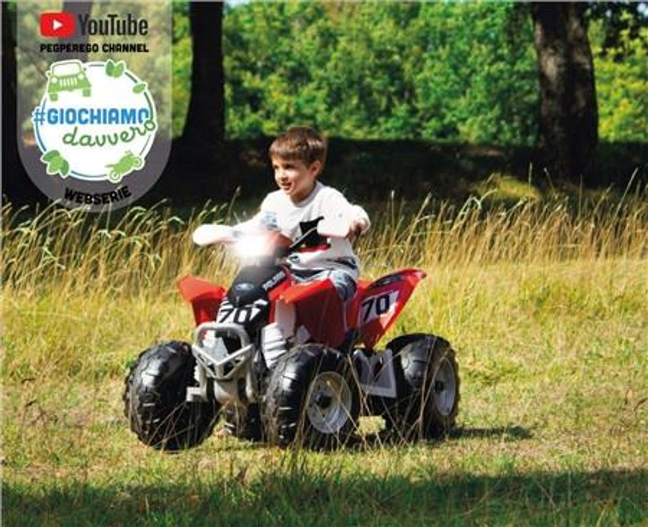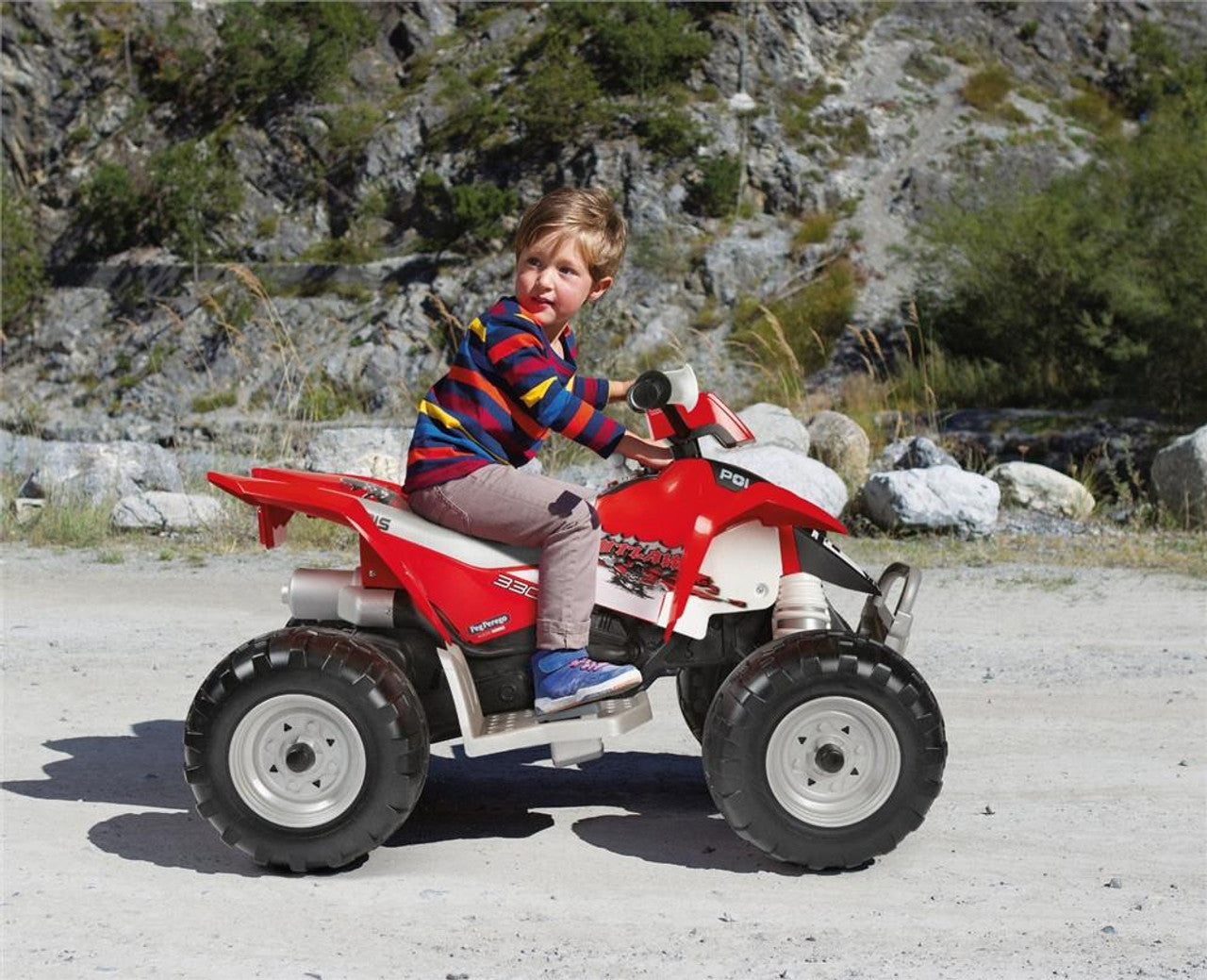The Polaris Outlaw 330W is perfect for all your exciting adventures. With top-notch Italian craftsmanship and impressive features like lights, sounds, music, and a horn, this Peg Perego electric quad guarantees endless fun for children aged 3 and up. Use the START button or the accelerator pedal to activate the electric dashboard and prepare to be amazed! Your child can enjoy the LED light on the front lamp, the realistic engine noise, the functioning horn, and even pre-recorded tunes. They can also connect a phone or mp3 player (not included) to listen to their favorite songs.